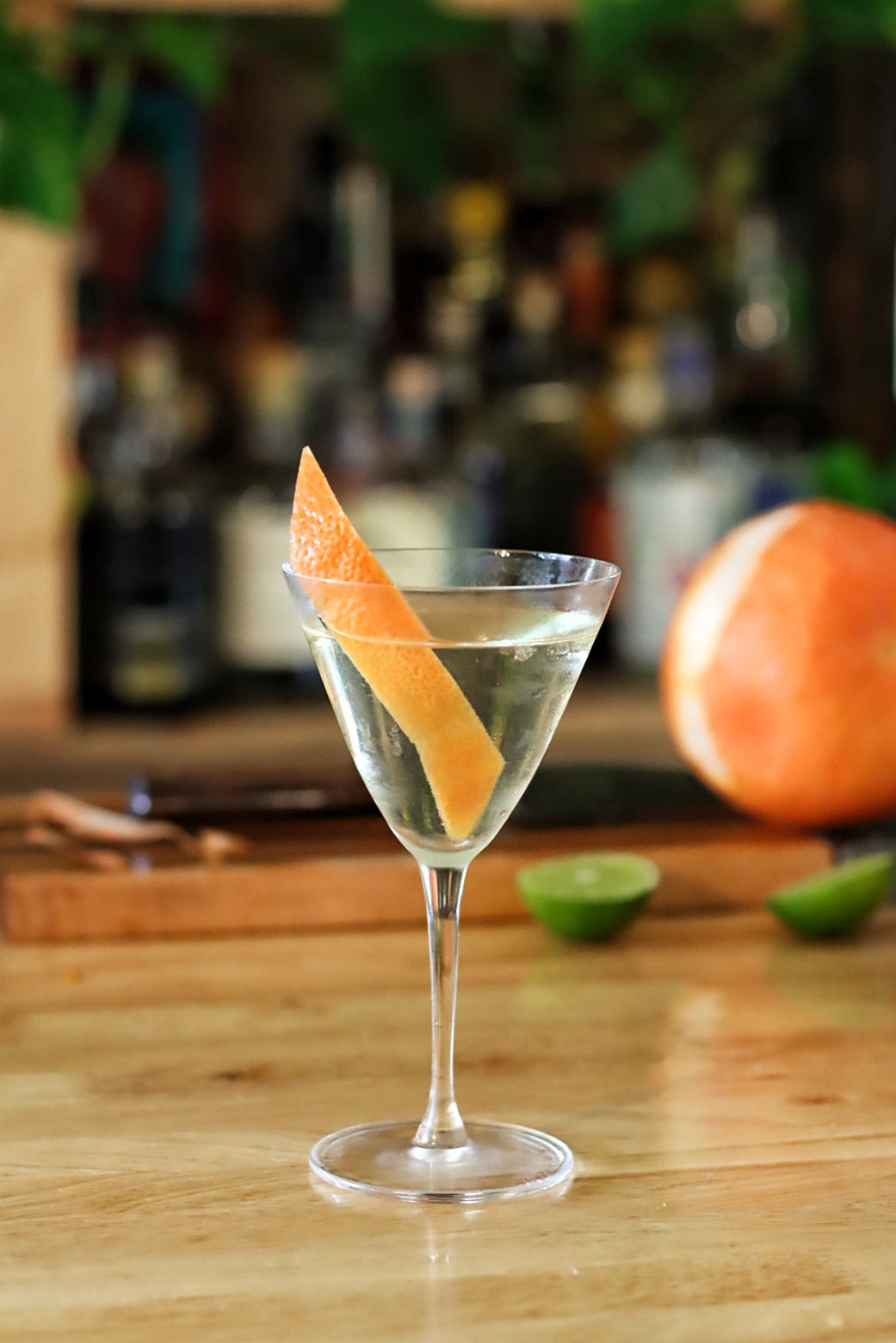 Shake with ice and fine-strain into a rocks glass over a large ice cube. Half salted rim, or spicy rim if you're feeling bold. Garnish with a grapefruit slice or wheel.